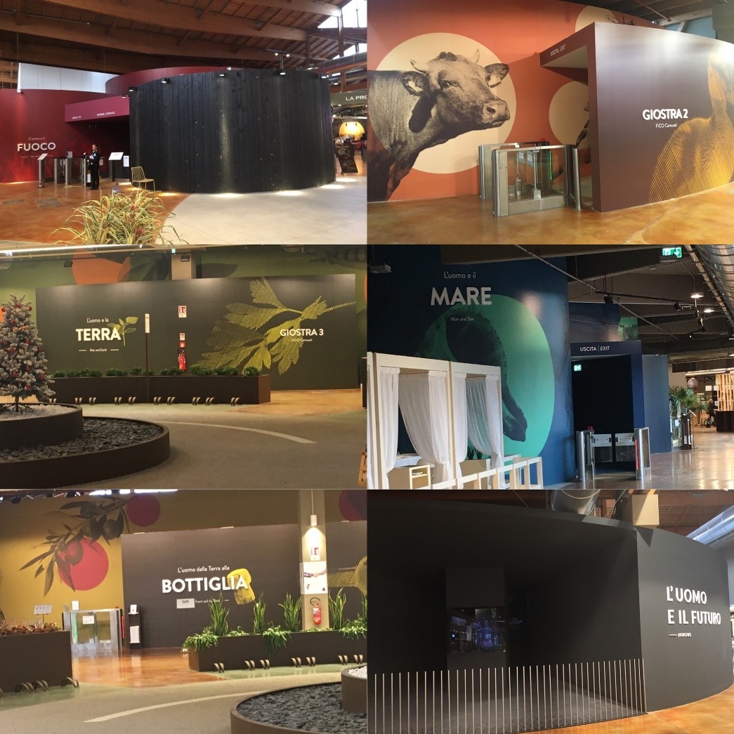 Inside you can find 40 factories divided into 8 categories: cured meats, cheese, cereals, fruit and veg, sweet, flowers and plants, seafood and liquids (beer, wine, oil and vinegar). There are also 6 large educational “rides” dedicated to Fire, Earth, Sea, Animals, Bottled Goods, and the Future and a Congress Centre accommodating from 50 to 1000 people that will become a cinema in the evening.